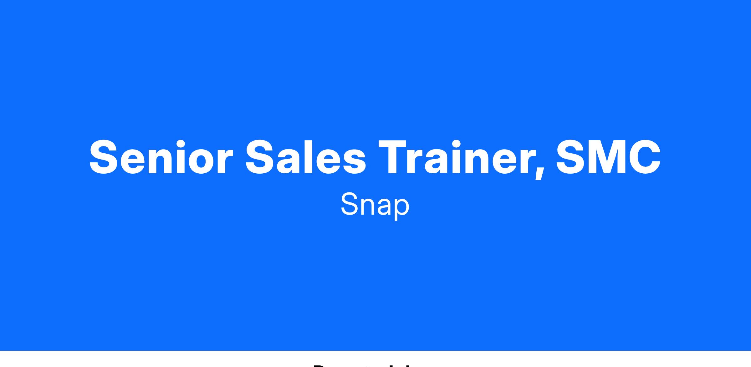 We’re looking for a Senior Sales Trainer to join Team Snapchat! As part of the Small & Medium Customer (SMC) team, you will develop, program manage and deliver world-class learning programs that uplevel capabilities and productivity for our global vendor sales footprint - encompassing several programs. As a core part of our team, this role will closely partner with training counterparts at our vendor to lead sales program curriculum design, stakeholder management, training design, development, delivery and quality to bring out the best from our Vendor-based programs and ensure individuals are equipped with the knowledge to be successful and drive revenue growth. To achieve scaled training globally, you’ll collaborate with a variety of teams within Snap (including Sales, Business Development, Customer Success, Revenue Growth, Content, Vendor Management, and Operations), along with vendors and external consultants.