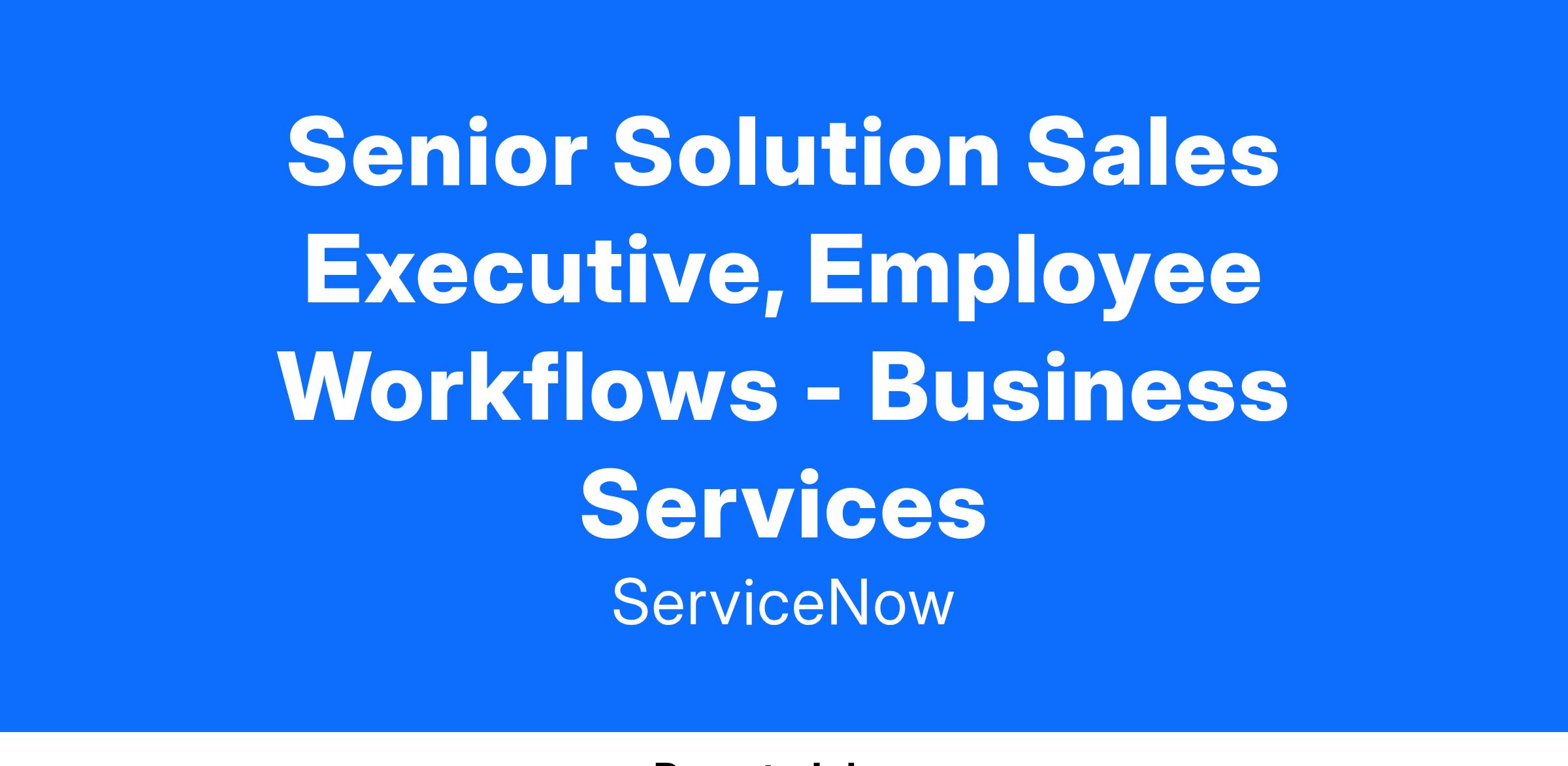 The Solution Sales Executive will oversee market success of ServiceNow's Employee Workflow products. These products are built on our market leading Service Management platform and create a single source of truth that allows enterprise processes to execute with uniform information.