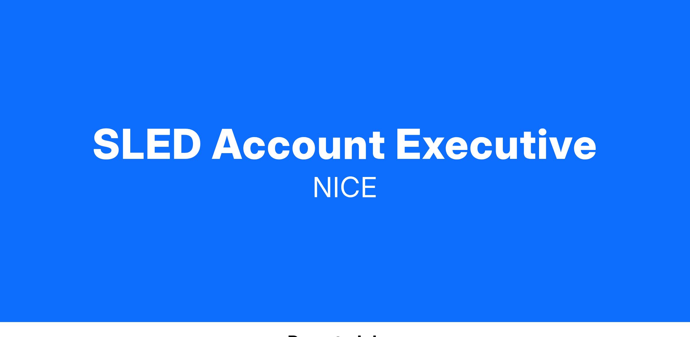 The SLED Account Executive's primary focus is aimed at closing larger strategic business while maintaining sustained transactional sales growth with a robust pipeline of new opportunities. Collaborating with the entire partner ecosystem to identify, develop, accelerate, up-sell and close transactions is critical. The Account Executive role is responsible for the sale of NICE solutions to support the operational needs of our clients and prospects.
