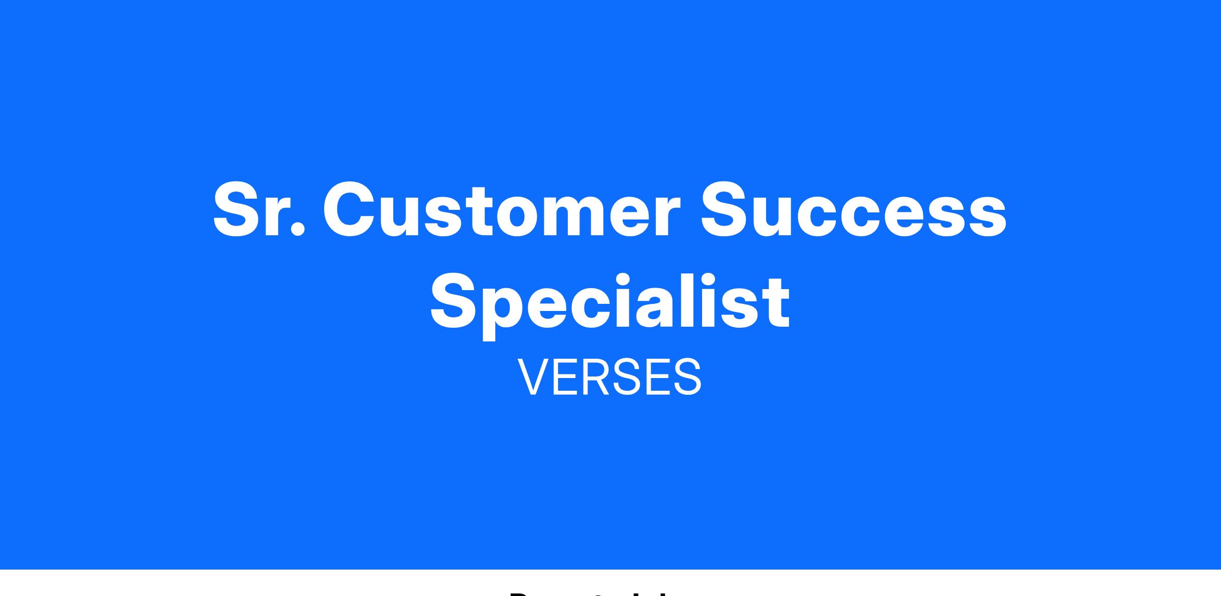 JOB TITLE: Sr. Customer Success Specialist