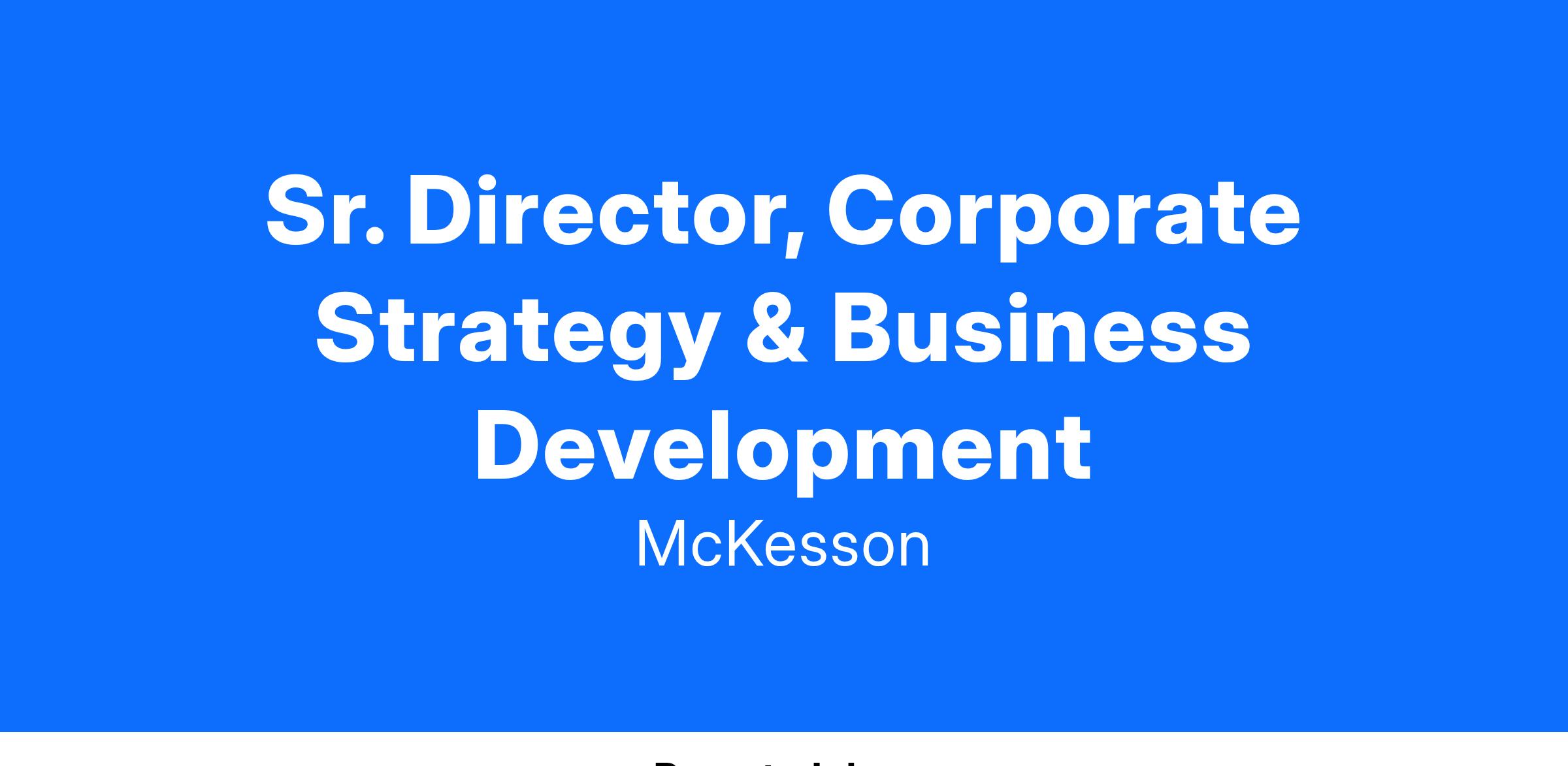 McKesson’s Oncology & Specialty Strategy and Operations Department is seeking to add a Senior Director to its Strategy team that is responsible for helping the business achieve its growth goals and strategic vision. The Senior Director, Strategy will play a pivotal role in shaping and driving the strategic direction of our oncology and specialty business. In this challenging and highly visible role, this individual will support strategic decision-making by leading projects related to market analysis, emerging industry trends, and the identification of strategic needs as it relates to the pursuit of building new and strengthening existing business endeavors. This leader will work with cross-functional teams, including Oncology & Specialty business leaders, Corporate Strategy teams, and Finance to ensure comprehensive evaluation of opportunities and alignment with Oncology & Specialty’s strategic objectives. This role reports directly to the Vice President, Strategy of Oncology & Specialty.