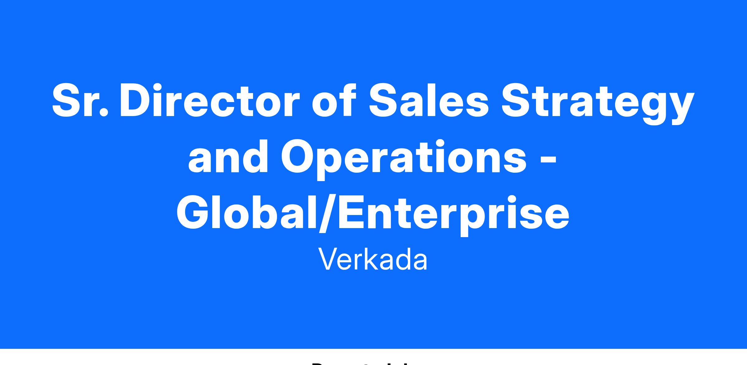 We are seeking a hands-on, strategic and results-driven leader to join our team as the Sr. Director of Sales Strategy and Operations, Enterprise Embedded. In this critical role, you will be responsible for managing the team that drives the strategy and operations of our Enterprise and Global sales organizations, which are both significant growth areas for Verkada. You will be a key resource, partnering with the sales leaders and teams across the entire group to drive impact and increased performance.