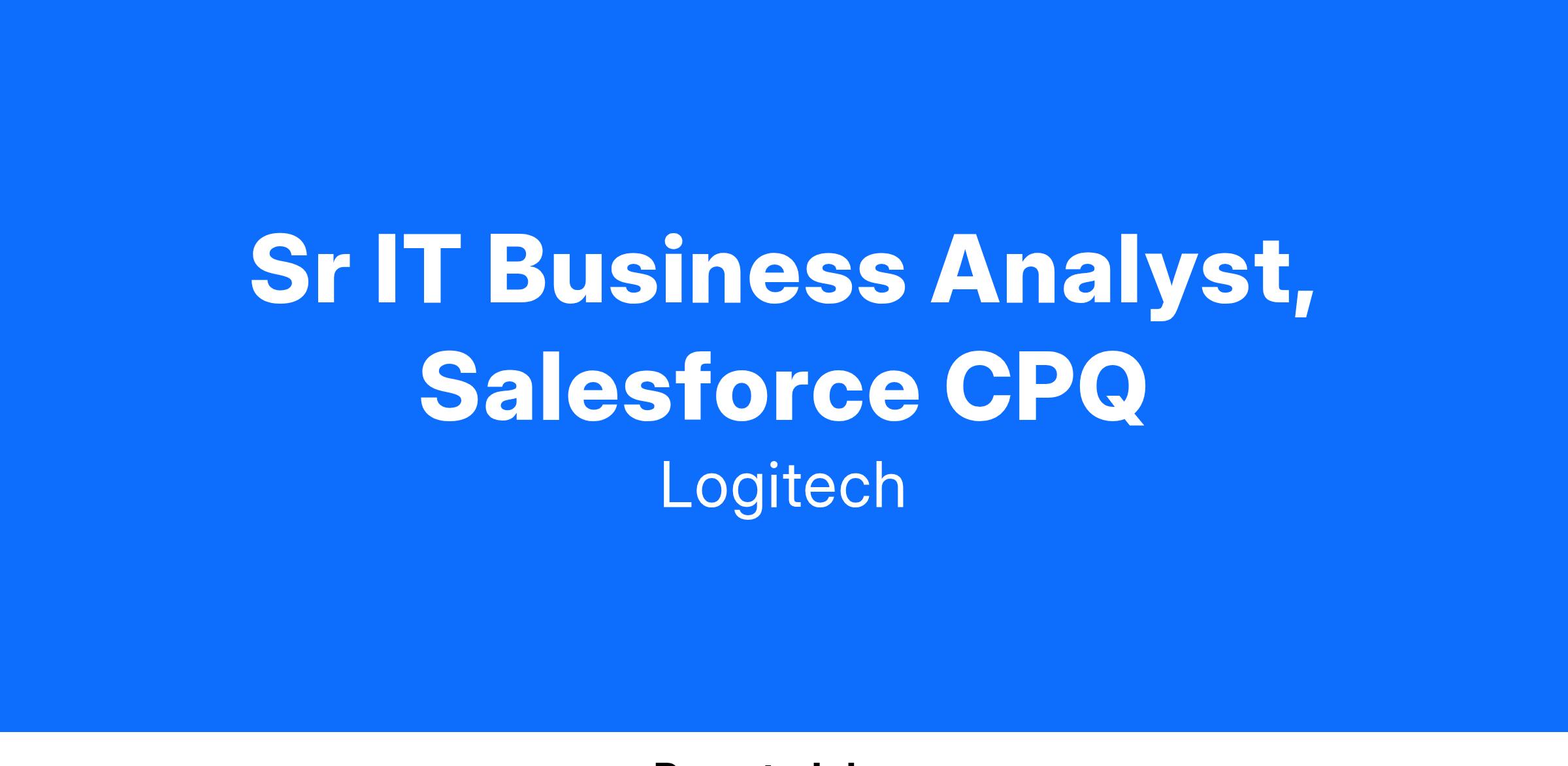 The Sr. IT Business Analyst, Salesforce CPQ, will work as part of the IT Business Engagement team to implement and support Salesforce CPQ [Configure, Price., Quote] for the B2B Sales organization. This will be a remote work-from-home position located in the United States.