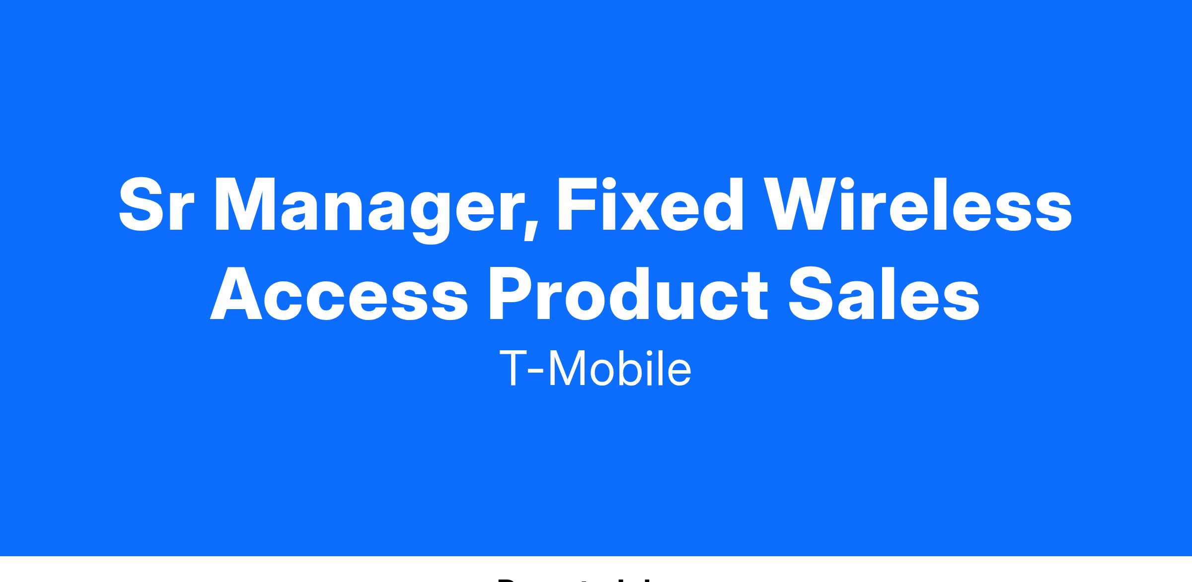 The Sr. Manager of Fixed Wireless Connectivity Product Sales leads a team of sales professionals responsible for selling the T-Mobile 5G Fixed Wireless Access/High Speed Wireless Internet Solutions portfolio including Direct, Indirect, Partner and Managed Service Provider Bundled Services. This includes support for all field-based segment existing accounts and prospecting new business relationships that will drive Fixed Wireless product revenue for T-Mobile.