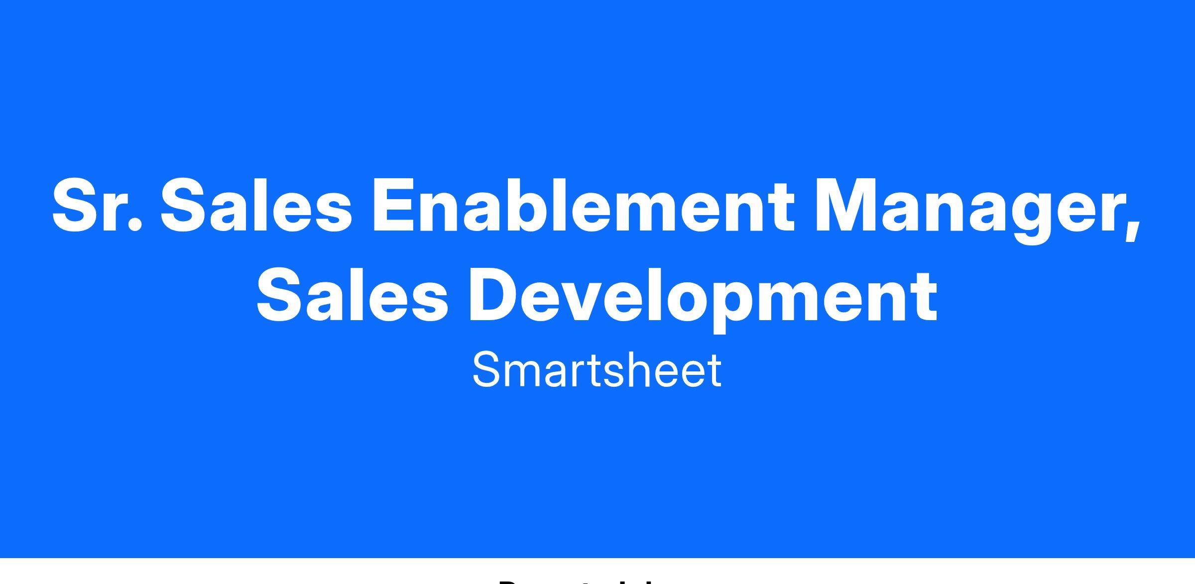 As a Sr. Sales Enablement Manager, you will be integral in developing Smartsheet’s SDR Enablement Program for FY26. We are seeking a dynamic and experienced sales enablement professional who is self-motivated, detail-oriented and is a polished facilitator with strong coaching/mentorship skills. In this role, you will play a crucial part in training, ramping up new hires globally, and coaching existing team members through workshops, roleplays, and other interactive sessions.