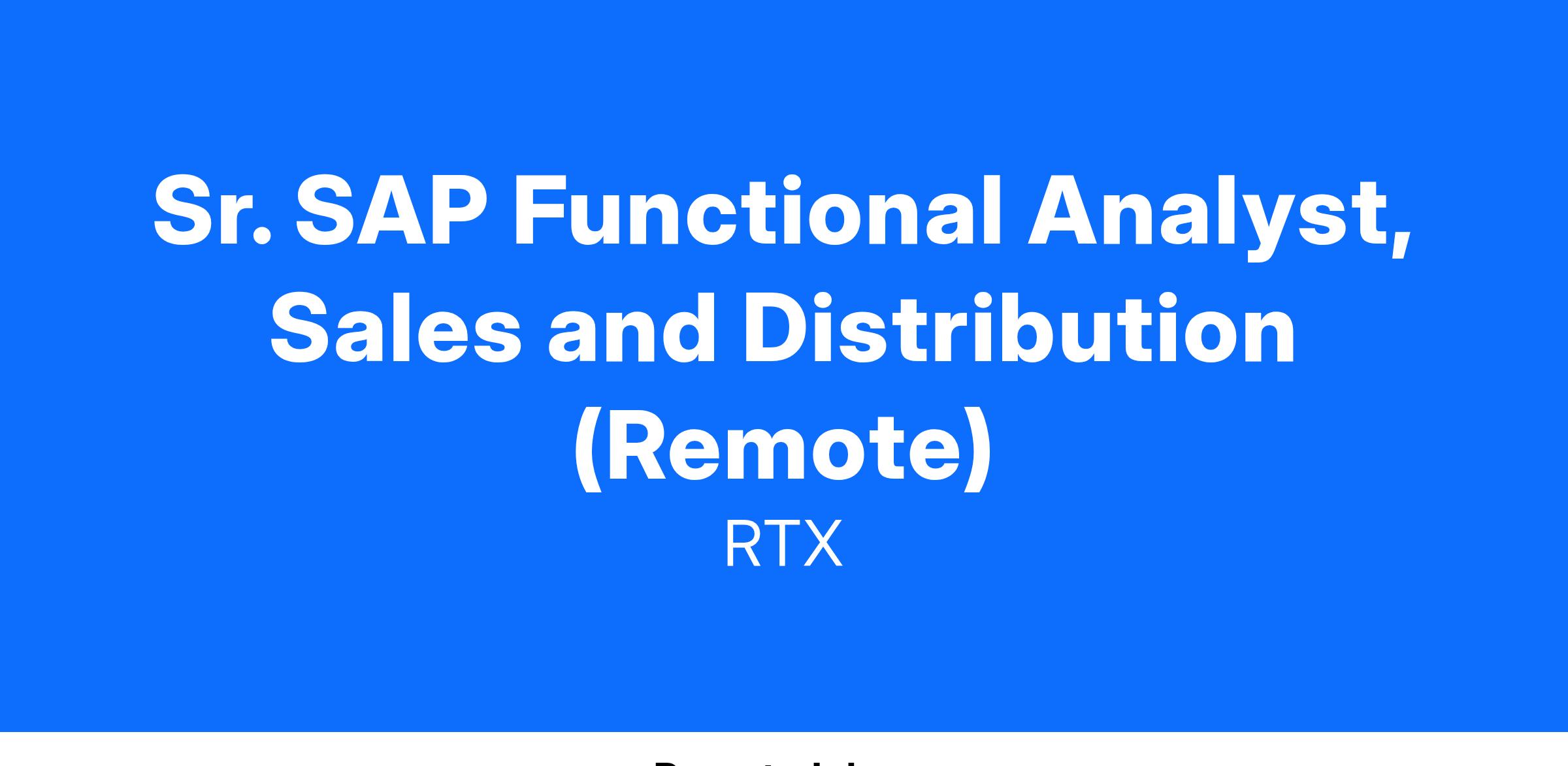 RemoteWe are hiring for a Senior SAP Sales and Distribution Functional Analyst. The SAP SD role is focused on first line and hands-on experience within the SAP support organization. Responsible for the resolution of complex SAP digital processes for the Order to Cash workstream in the following focus areas: quotes, contracts, scheduling agreements, sales orders, returns, delivery, shipping, pricing and billing.