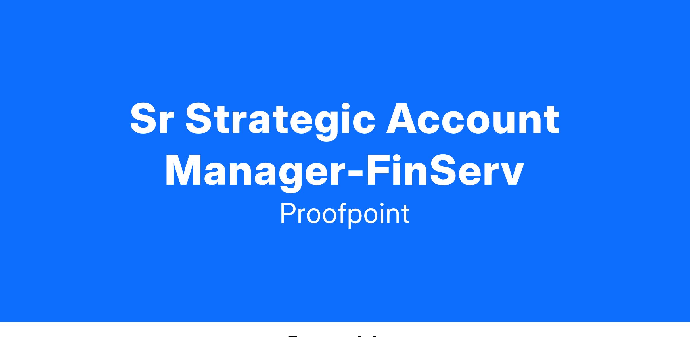 Proofpoint has a critical need for a self-starting, highly motivated Finserv Strategics Account Manager who can build deep relationships across multiple business units at F100 Accounts.