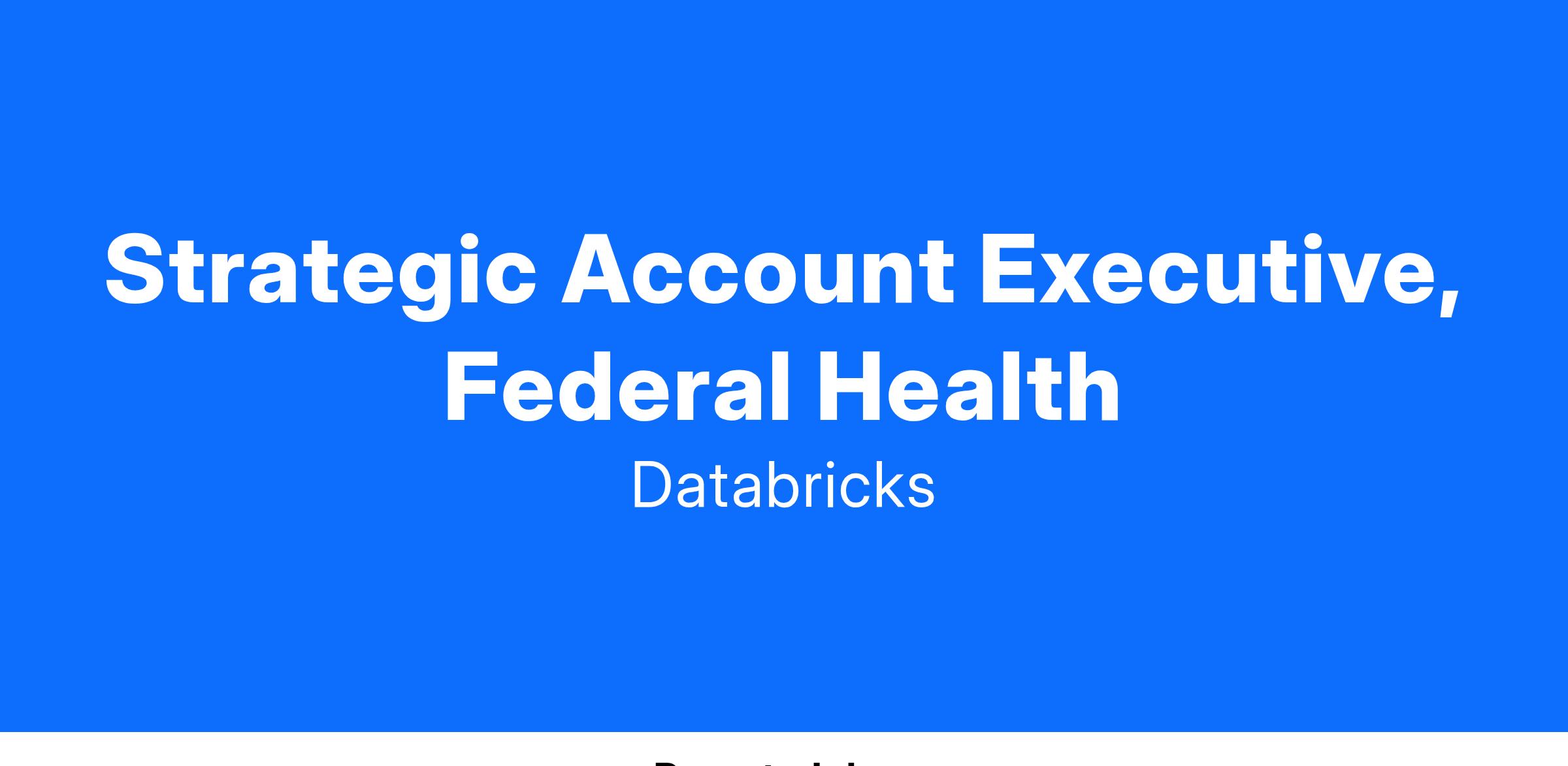 As a Strategic Enterprise Account Executive, Federal Health, at Databricks, you will be responsible for driving sales of Databricks within this dedicated set of accounts in the Federal Civilian segment. As an experienced Account Executive, you know how to sell innovation and change through customer vision expansion and can drive deals forward to compress decision cycles. You love understanding a product in depth and are passionate about communicating its value to Federal Healthcare clients. Always looking for new opportunities, you will be expected to net new accounts and expand current footprints. Along with the chance to close an exciting deal, we also offer accelerators above 100% quota attainment.