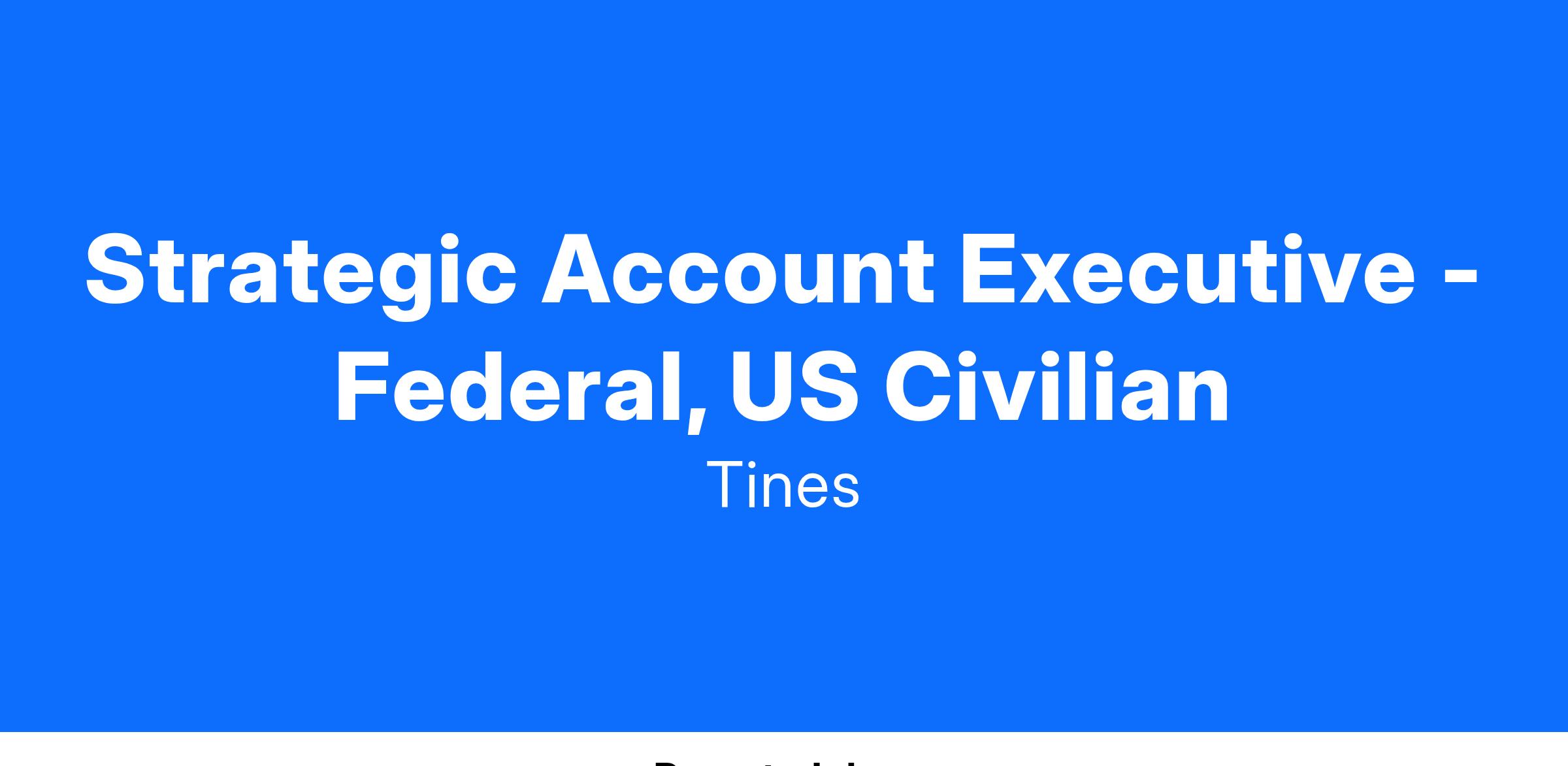 As a Strategic Account Executive - Federal, US Civilian you will be responsible for shaping and executing on our go to market strategy focused on selling Tines solutions to the US Civilian Agencies. Success in this role will provide the opportunity to have an influential voice in shaping our team, our sales direction, our go to market strategy and our culture.