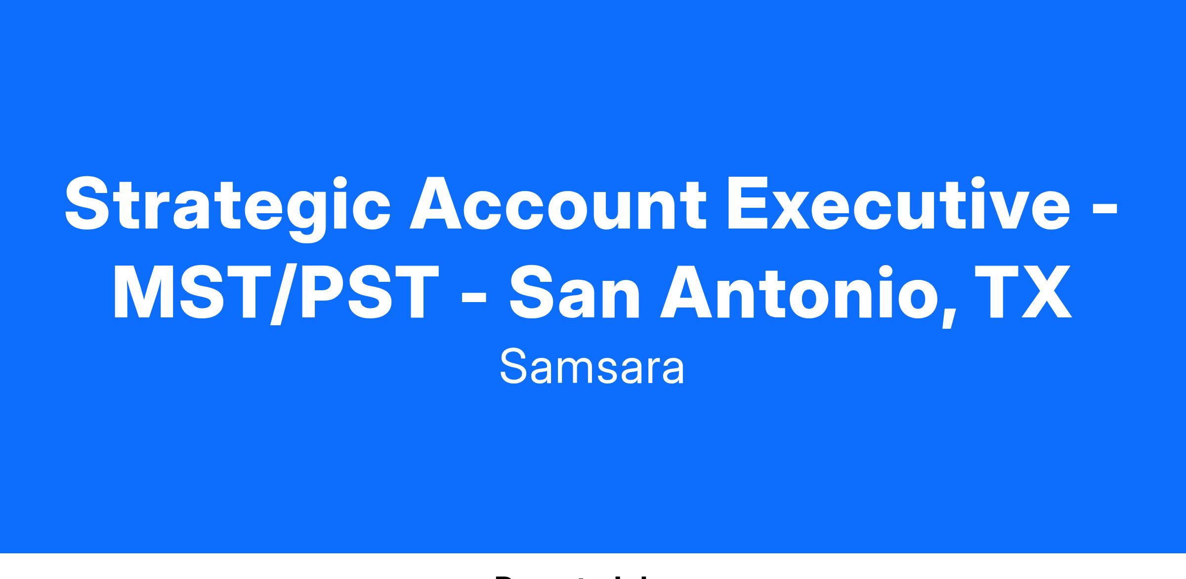 Strategic Account Executive - MST/PST - San Antonio, TX