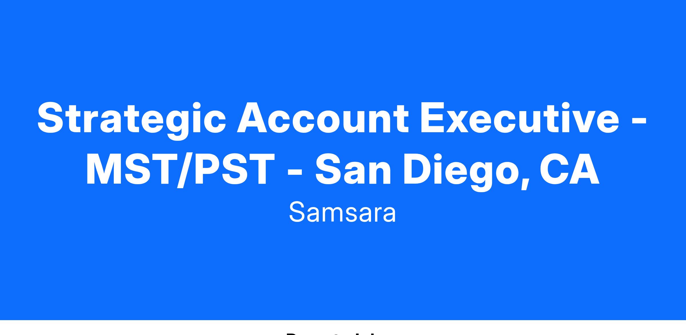 Strategic Account Executive - MST/PST - San Diego, CA