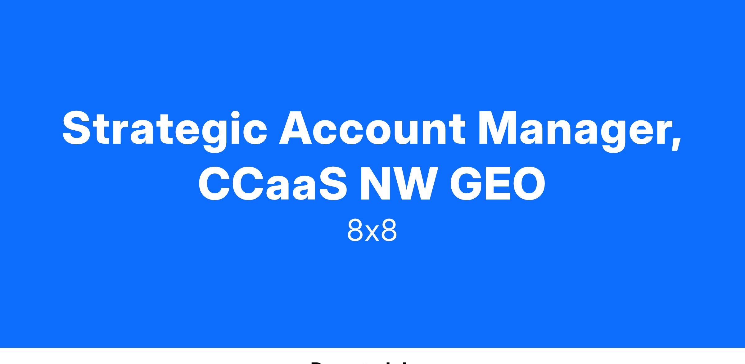 As a Strategic Account Manager embedded in our field sales team, you will work under the direction of the Sales Director. Your role is to be the primary contact point for 8x8 Enterprise customers. As such, driving customer success is critical to growing your book of businessYou will be tasked with managing key customers throughout the assigned territory, working with heads of functions and C level leaders supporting them with their business initiatives, especially their Cloud Communications journey, and ensuring they have a great customer experience.