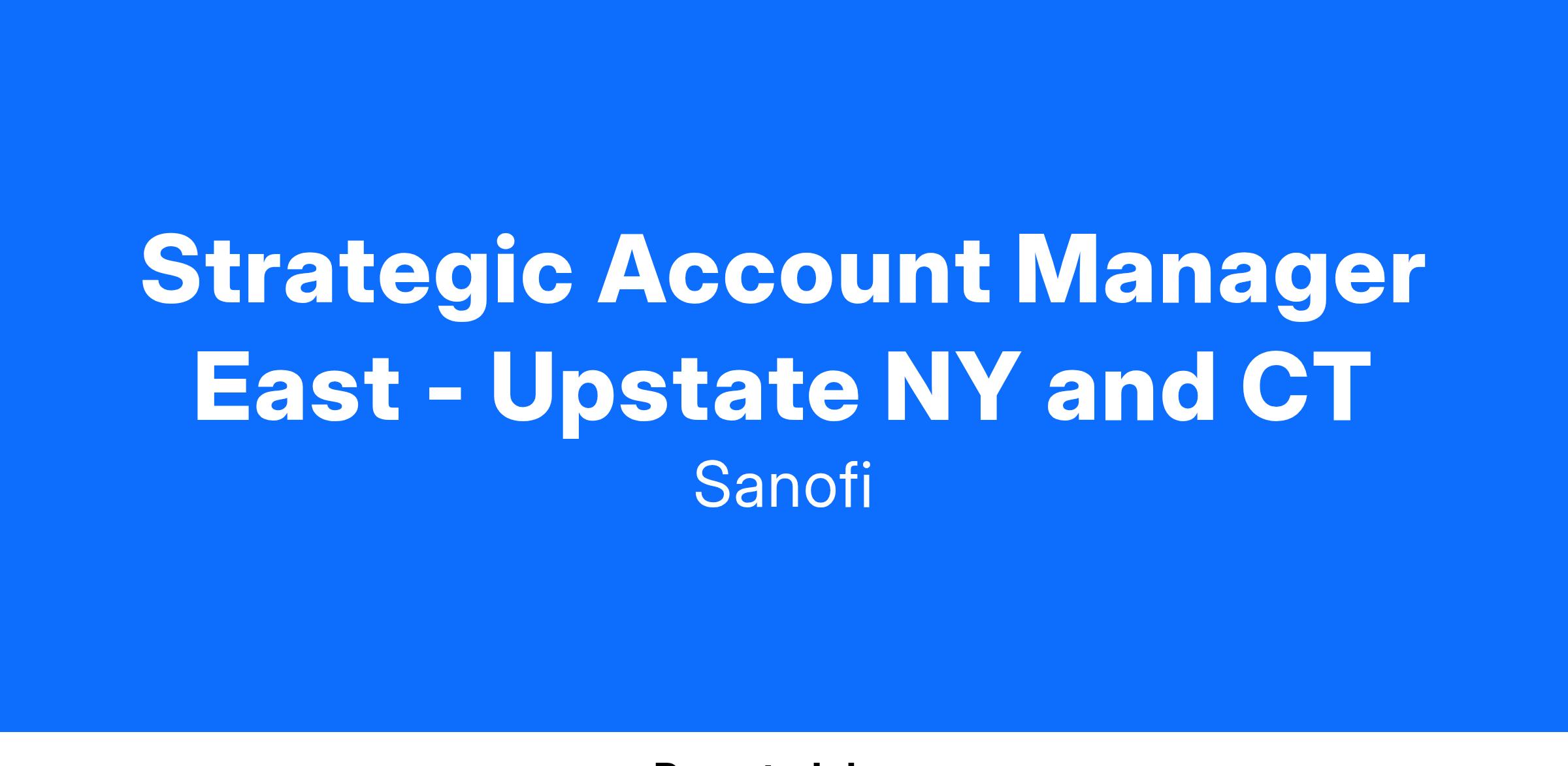 Job title: Strategic Account Manager East - Upstate NY and CT