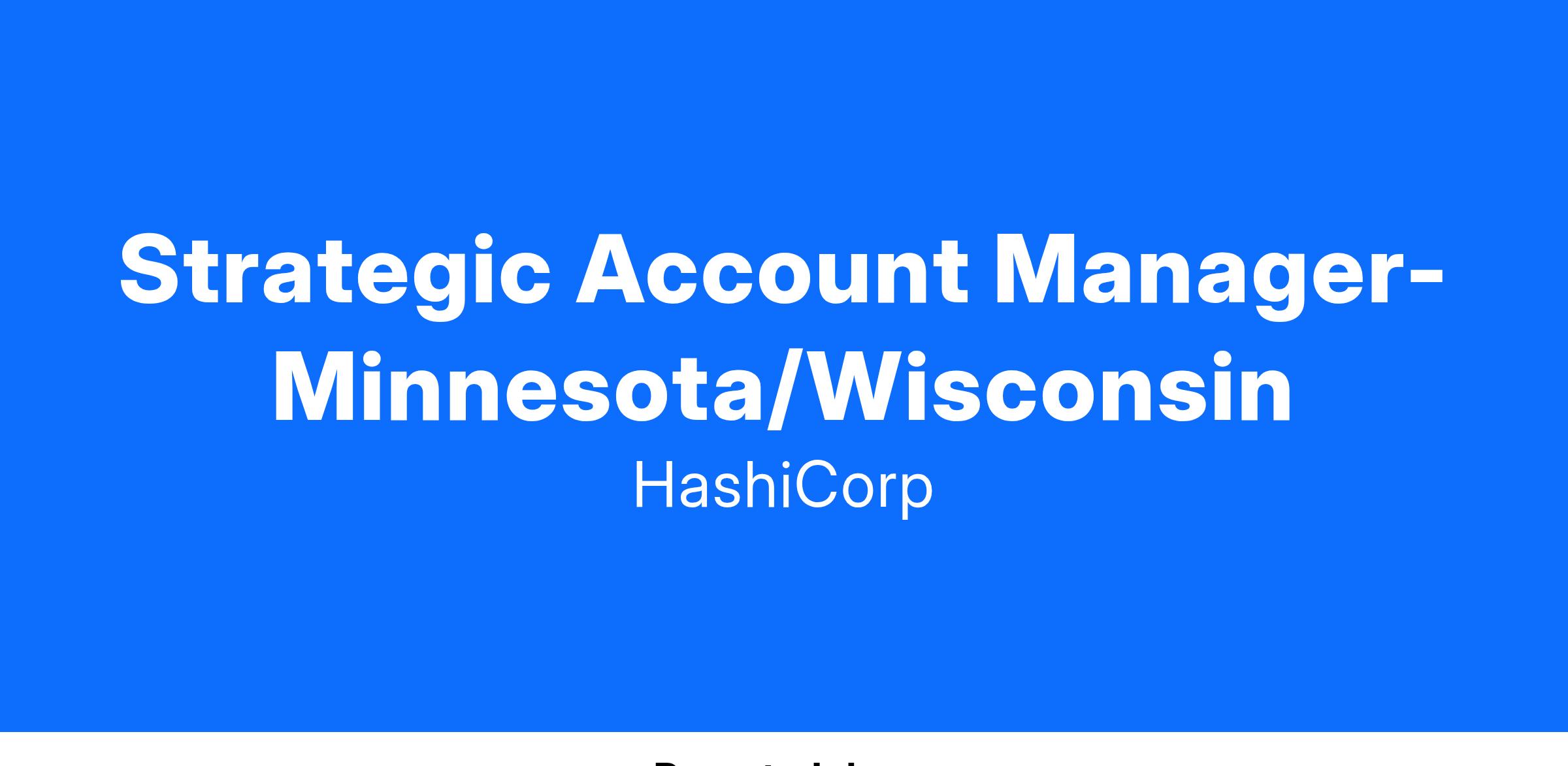 Strategic Account Manager is an outside sales position responsible for developing, managing, and closing business within accounts in our Strategic Accounts segment. The role is responsible for driving the sales cycle from prospect to close, selling the complete HashiCorp software suite to named key accounts and ensuring adoption and consumption of our solutions!