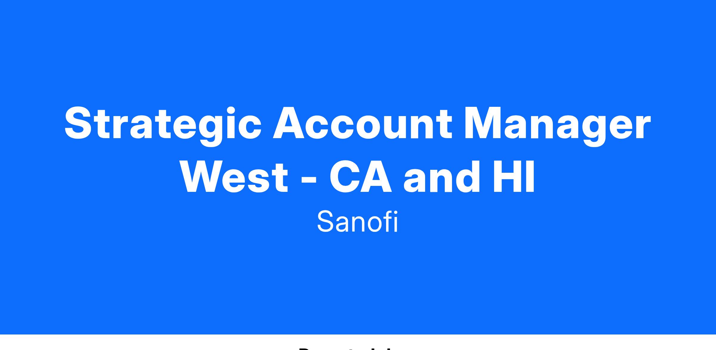 Job title: Strategic Account Manager West - CA and HI