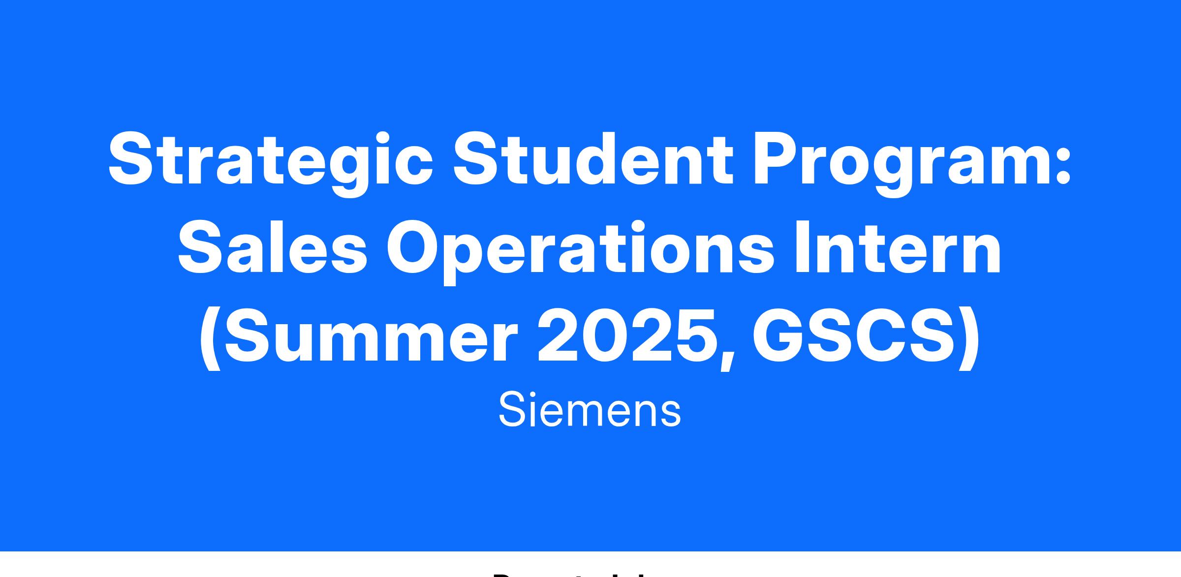 This is an excellent opportunity to gain hands-on experience in a fast-paced, dynamic sales environment. You will develop a deep understanding of Siemens' sales processes and have the chance to make a tangible impact on the success of our sales organization. If you are passionate about data-driven decision making, process improvement, and supporting high-performing sales teams, we encourage you to apply for this sales operations support internship.
