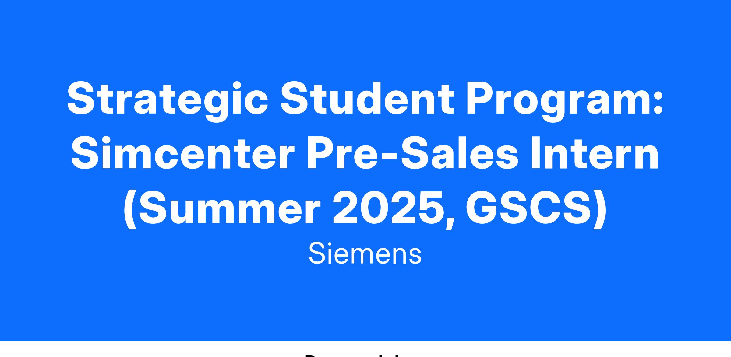 Strategic Student Program: Simcenter Pre-Sales Intern (Summer 2025, GSCS)