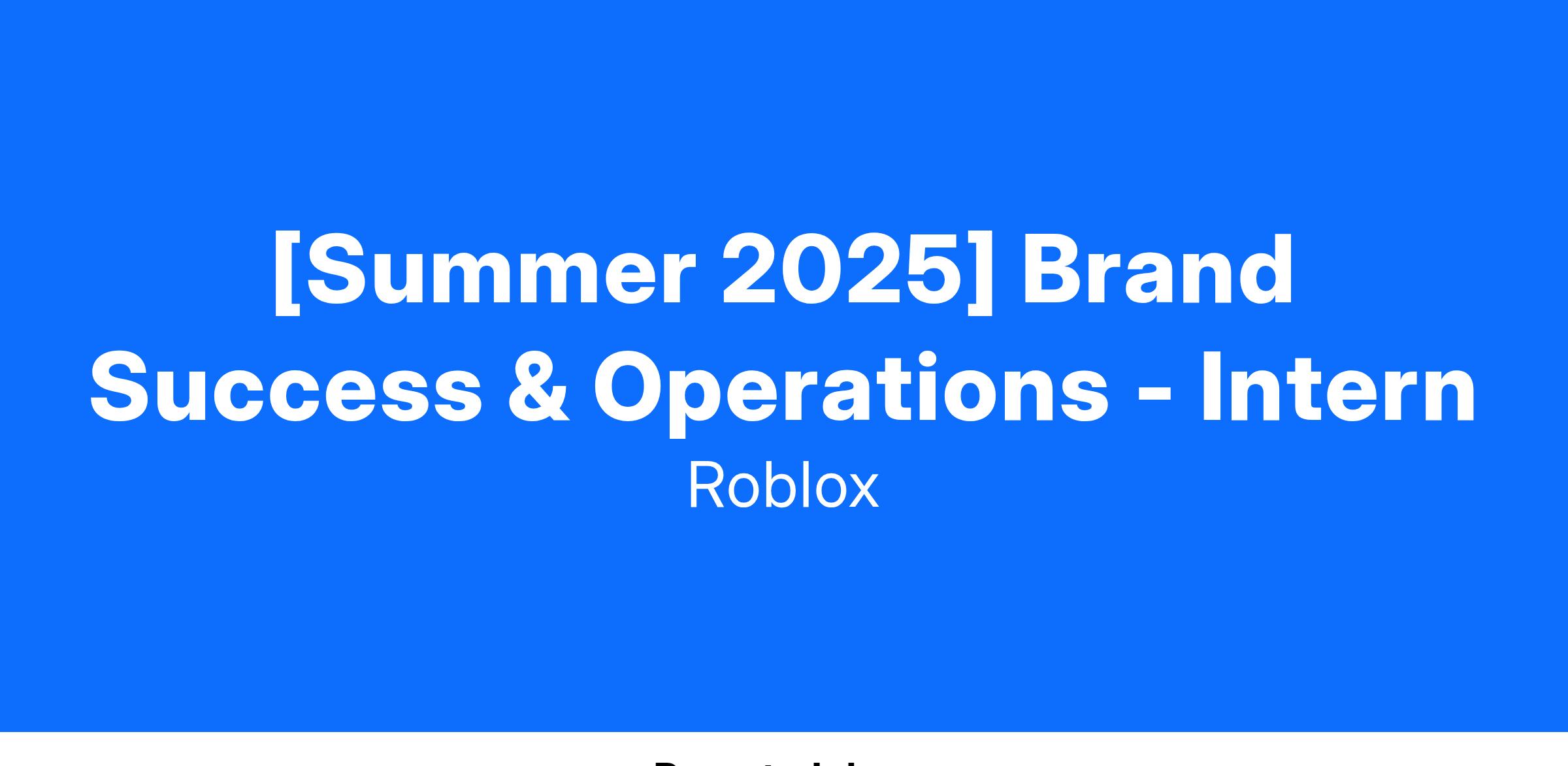 The Brand Success & Operations Specialist Intern position is a part of our Roblox 12-week summer internship program located in San Mateo, CA. As a Brand Success & Operations Specialist, you will work alongside the Ads & Brands Partnerships team to develop and execute strategies to enhance brand visibility on the platform.
