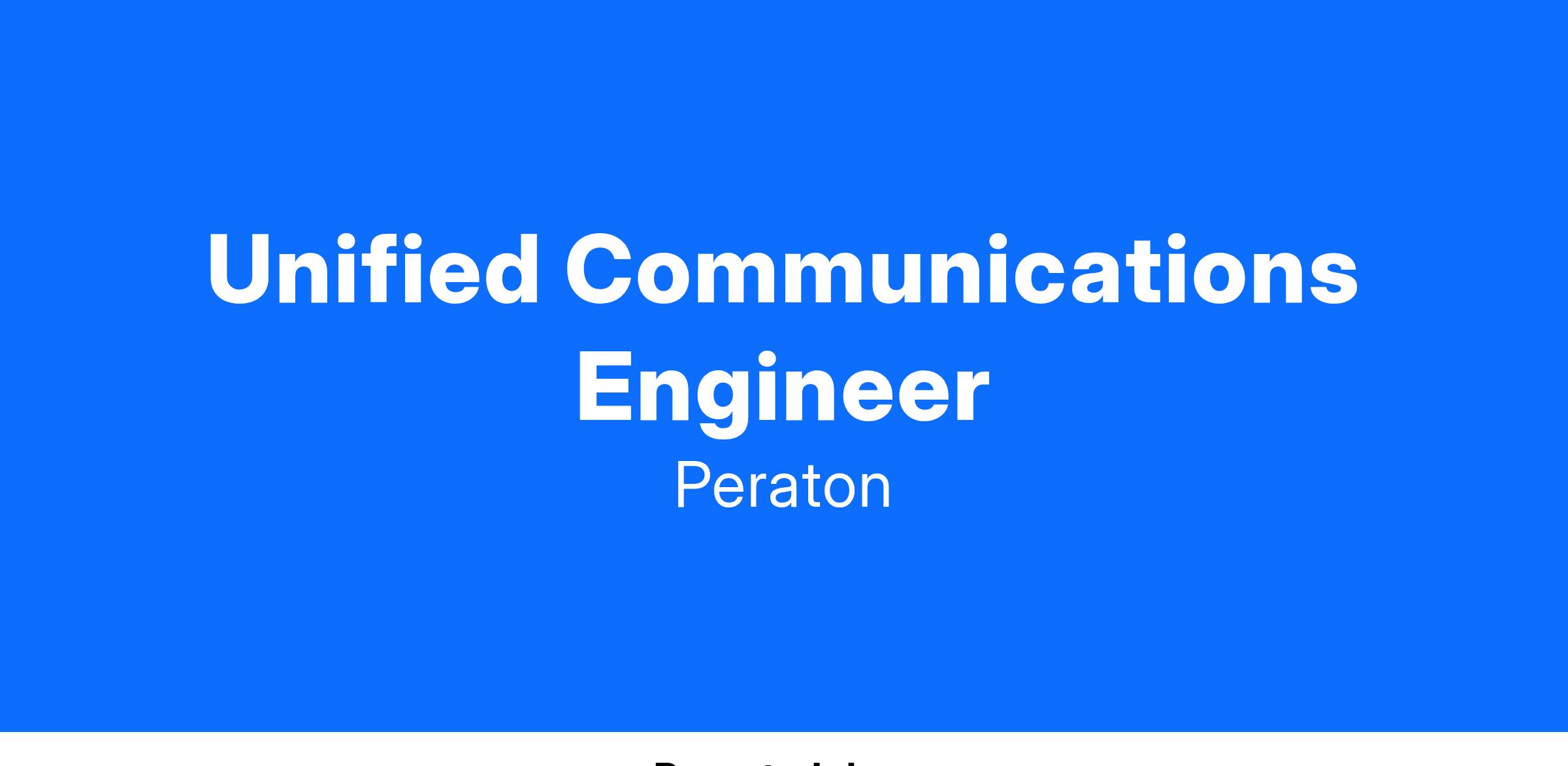 Peraton is seeking a Unified Communications Engineer to join our team of qualified, diverse individuals. The ideal candidate will support the Department of Homeland Security (DHS). This individual will support our government customer’s diverse communications platforms (Video Conferencing, Conference Room Video Teleconference Communications, Voice Over Internet Protocol, Voicemail, and Enterprise Content Deliver)y. The Unified Communications infrastructure is built predominantly on Cisco's communication equipment and applications.