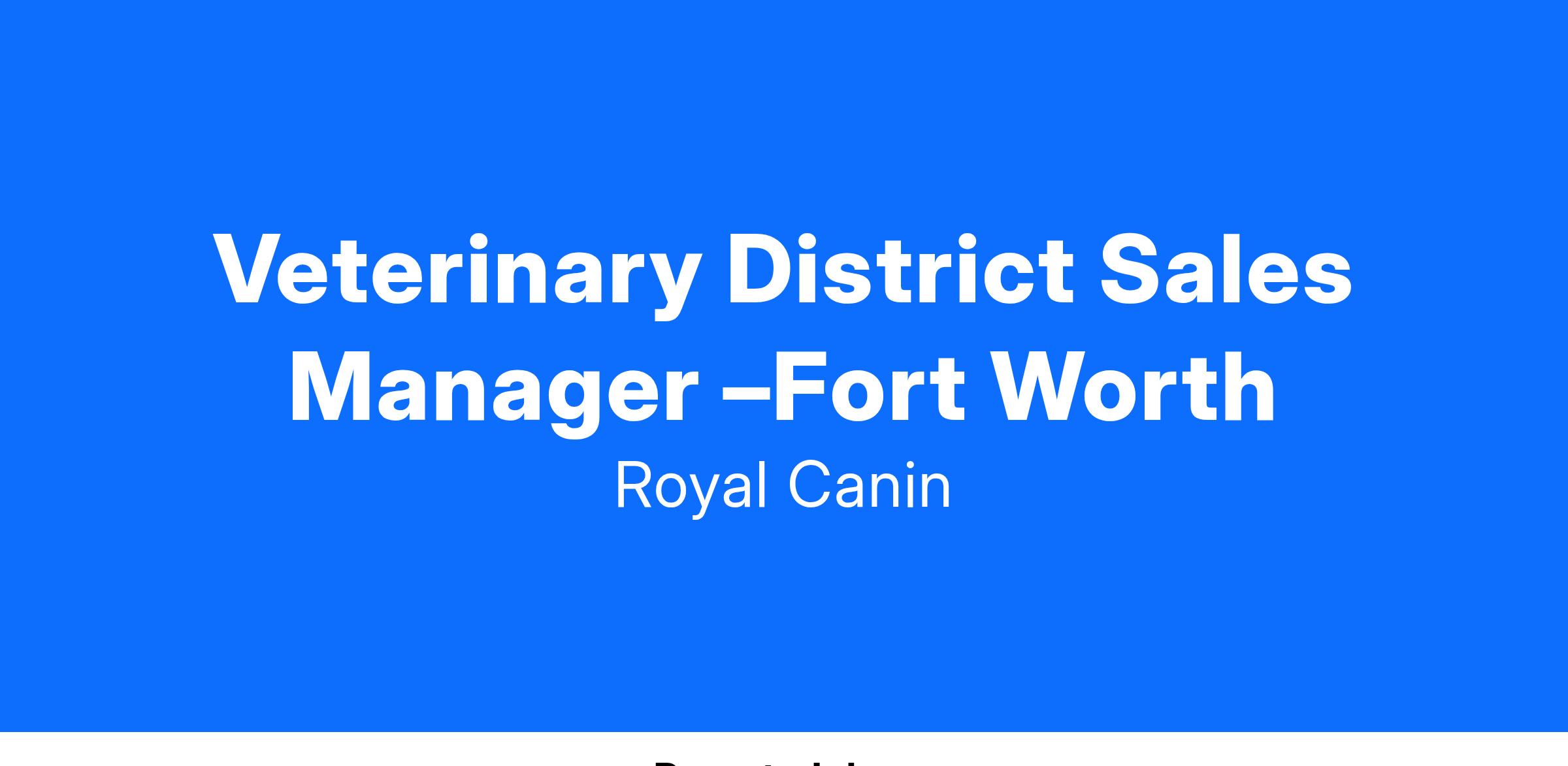 Veterinary District Sales Manager –Royal Canin