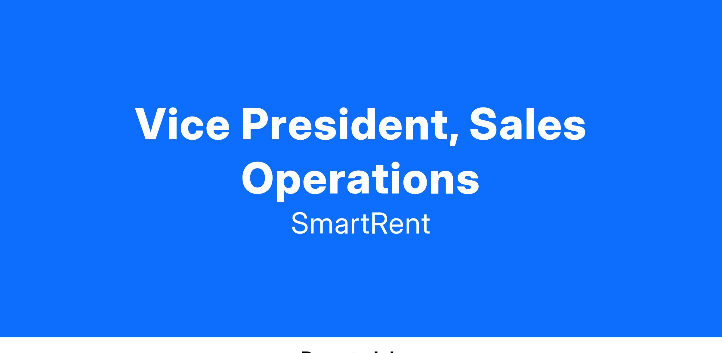 SmartRent is seeking a Vice President of Sales Operations to optimize our sales processes, drive revenue predictability, and enable scalable growth. This leader will be responsible for sales forecasting, pipeline management, financial modeling, and sales tech stack optimization, including Salesforce. The ideal candidate has experience operating in a hardware + software sales environment (preferred but not required) and thrives in a fast-paced, resource-constrained environment while having experience scaling larger organizations ($50M+ ARR).