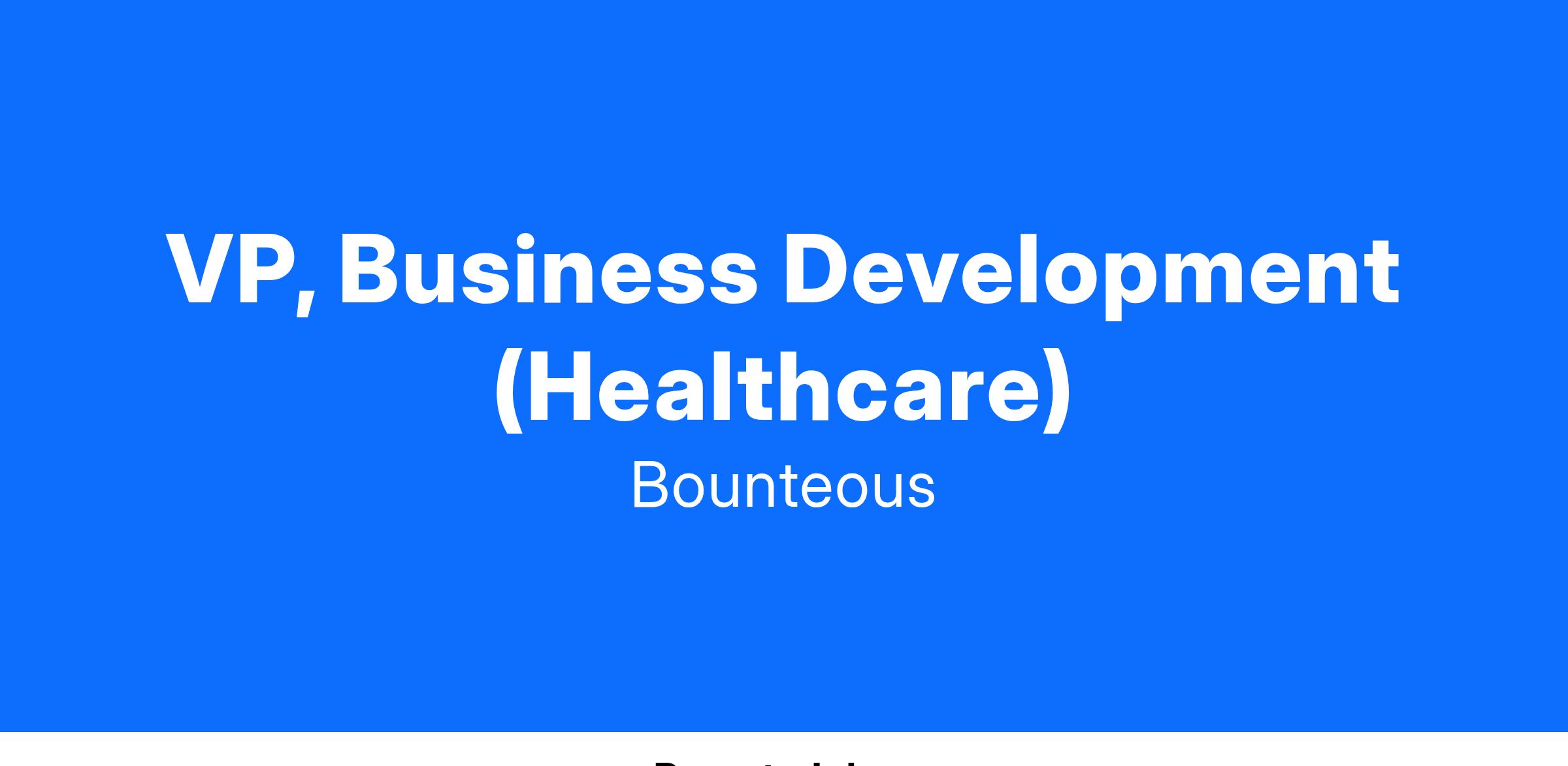 The VP must demonstrate strong executive influence, consultative business development skills, and expertise in technology-driven digital transformation, with a focus on creating measurable value for clients and articulating Bounteous’ unique positioning in addressing healthcare technology and data challenges. The ideal candidate will bring substantial experience from a technology consultancy and/or digital engineering firm, with a focus on U.S. healthcare clients in sectors such as payer/provider, retail health, and/or B2B health technology.